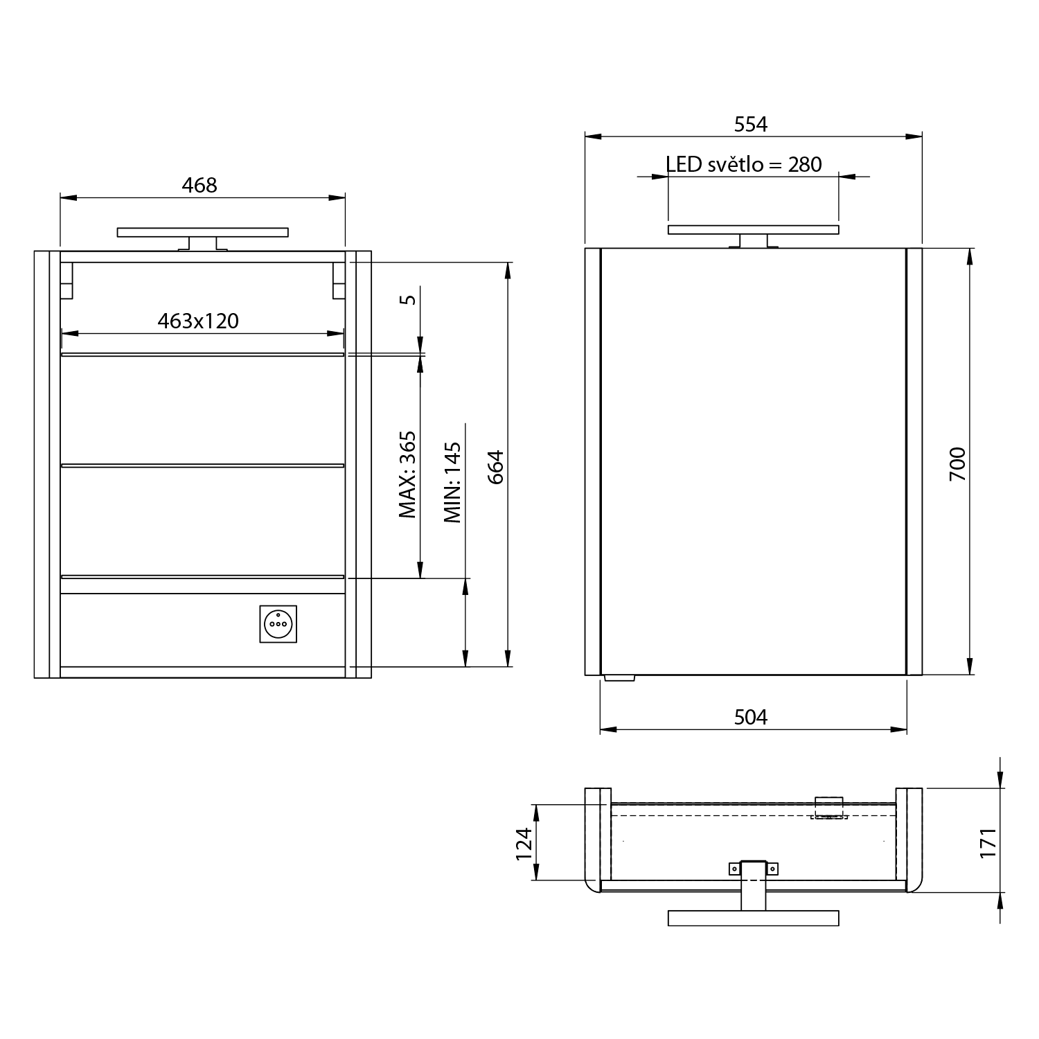 Sapho LUCIE galerka s LED osvětlením, 55x70x17cm, bílá LU055-0030
