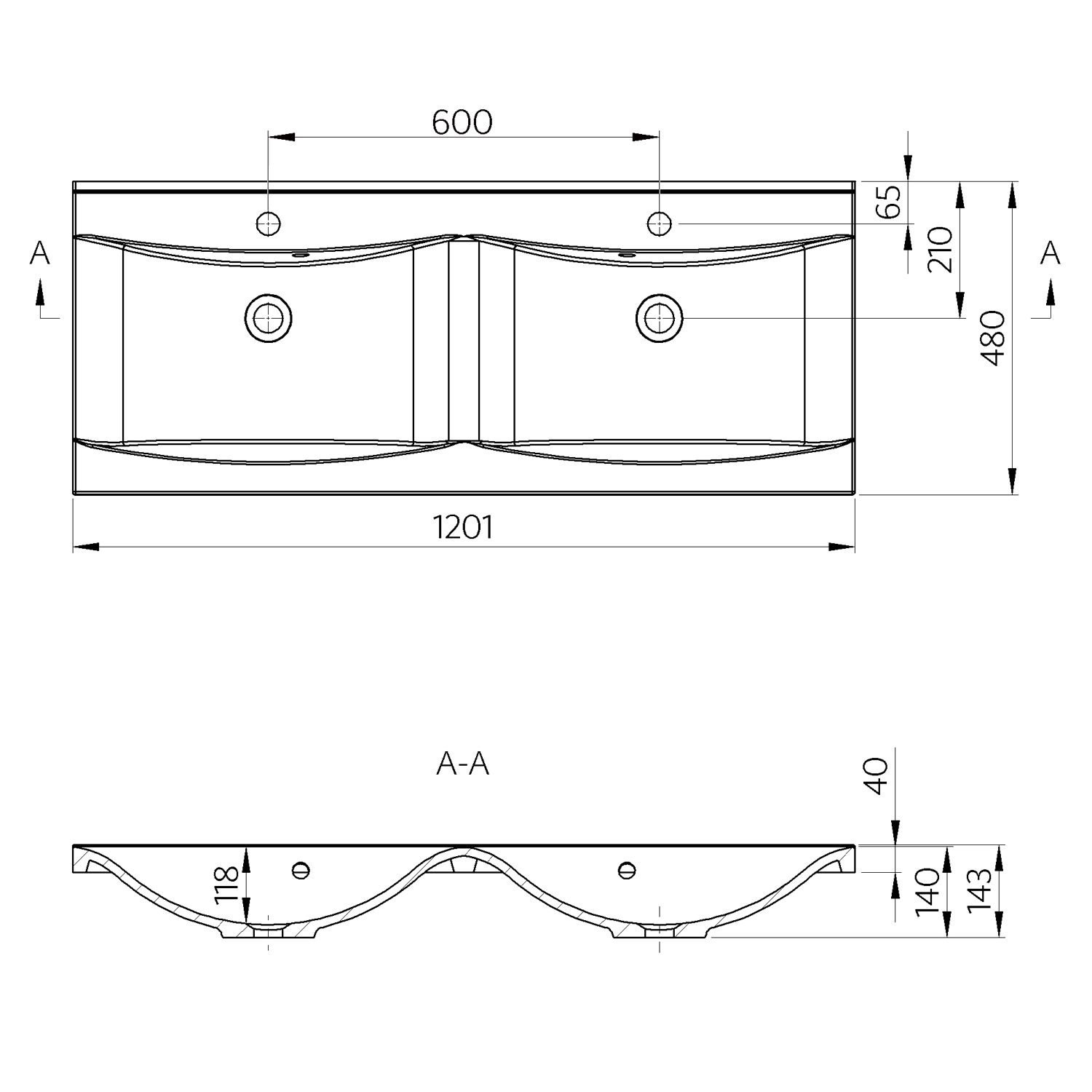 Sapho LUCIOLA dvojumyvadlo, litý mramor, 120x48cm, bílá 50122