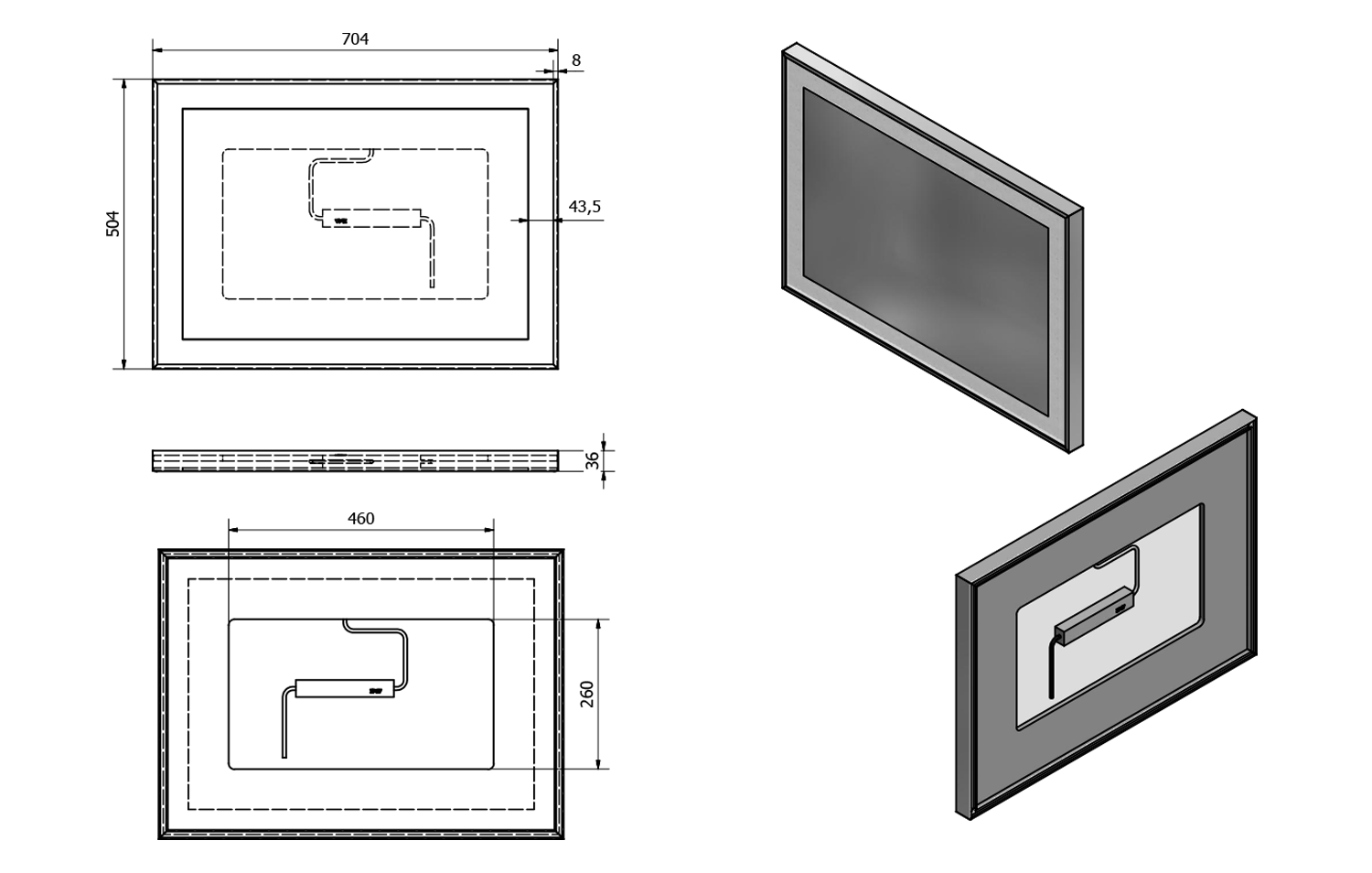 Zrcadlo v hliníkovém lesklém rámu LUMINAR je vybaveno moderním LED osvětlením. Dlouhá životnost LED osvětlení (cca 30 000 hodin) a nízká spotřeba jsou hlavními výhodami oproti klasické zářivce. Zrcadla LUMINAR nabízíme v několika rozměrech. Zrcadlo neobsahuje vypínač, vyžaduje zapojení na externí vypínač v místnosti.