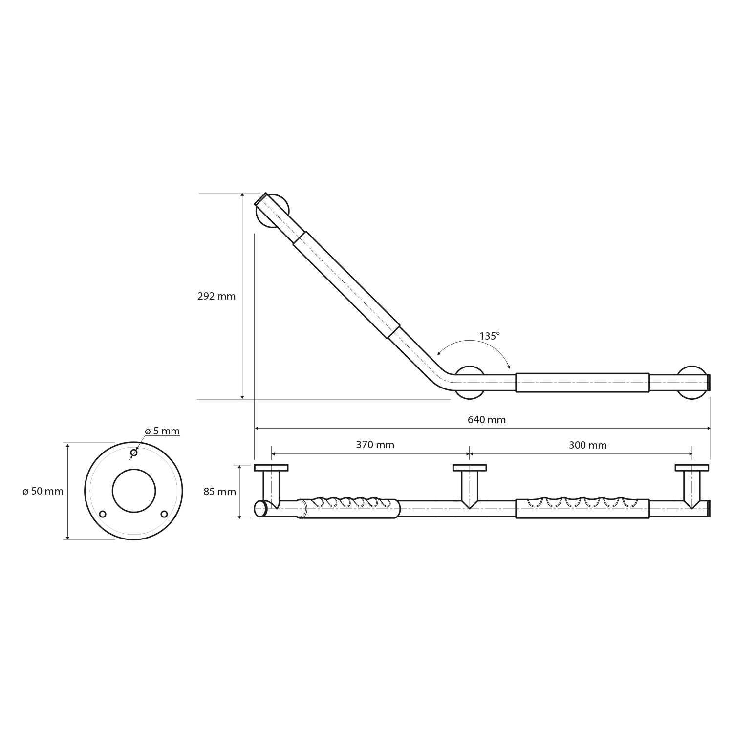 Sapho Madlo lomené 135° s protiskluzem LEVÉ, nerez lesk XR507
