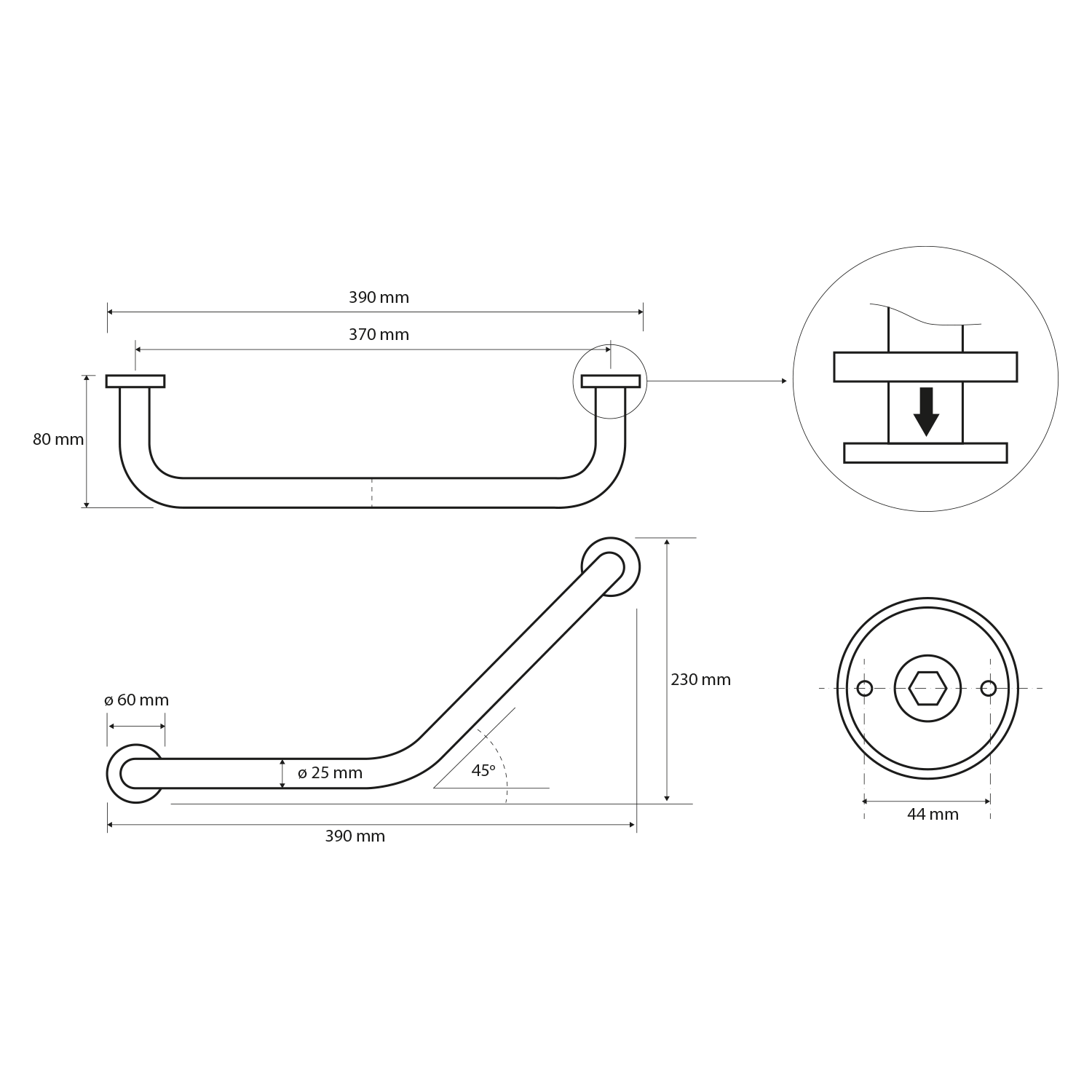 Sapho Madlo zahnuté 370x230x80mm, nerez lesk XH519