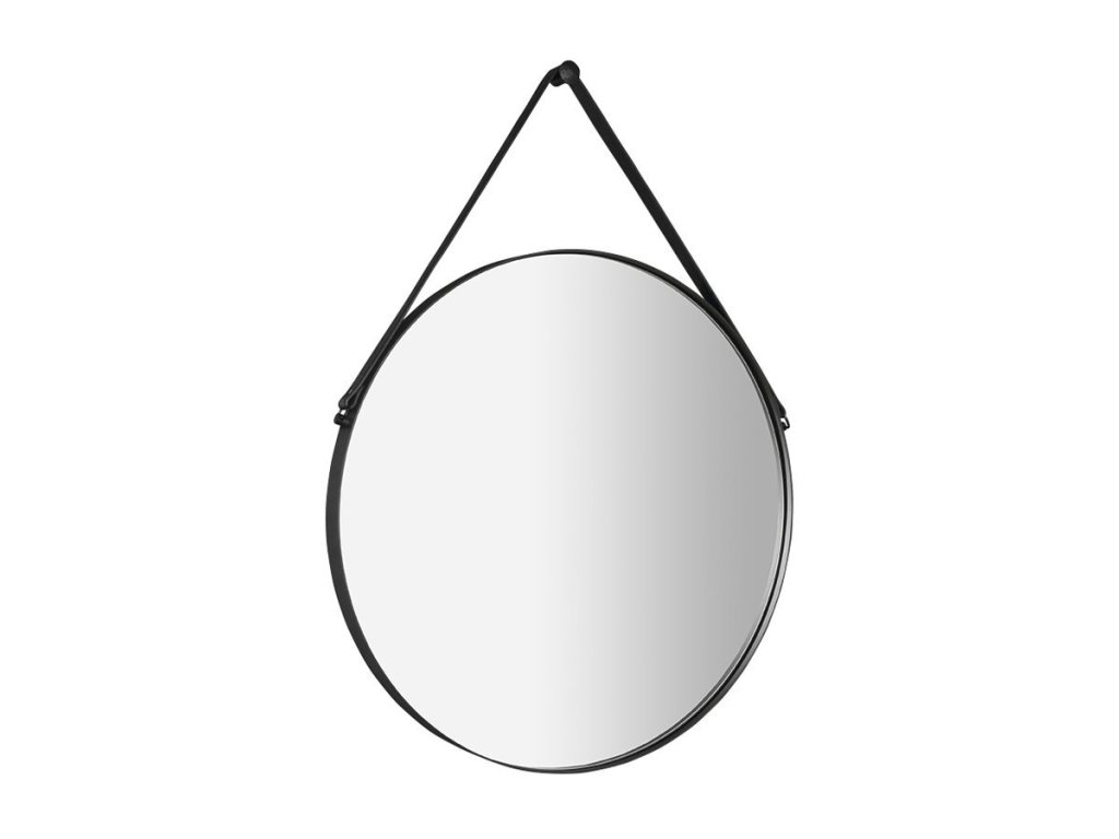 Sapho ORBITER kulaté zrcadlo s koženým páskem ø 60cm, černá mat ORT060