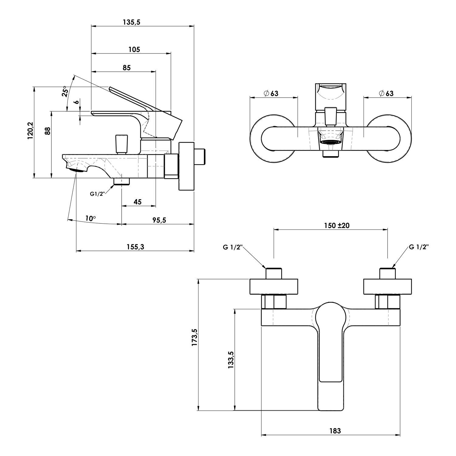 | Instalace: | Nástěnná 150 mm |