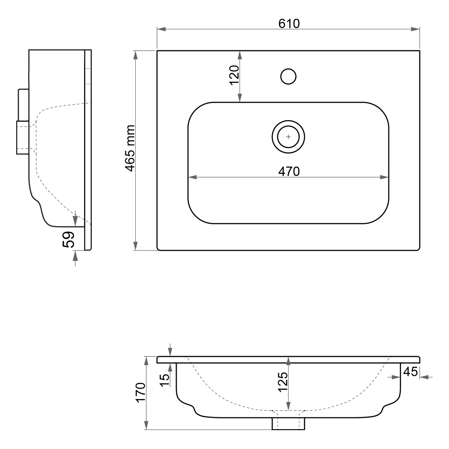 Sapho PIEDRA keramické umyvadlo nábytkové 61x46,5cm, bílá 43061