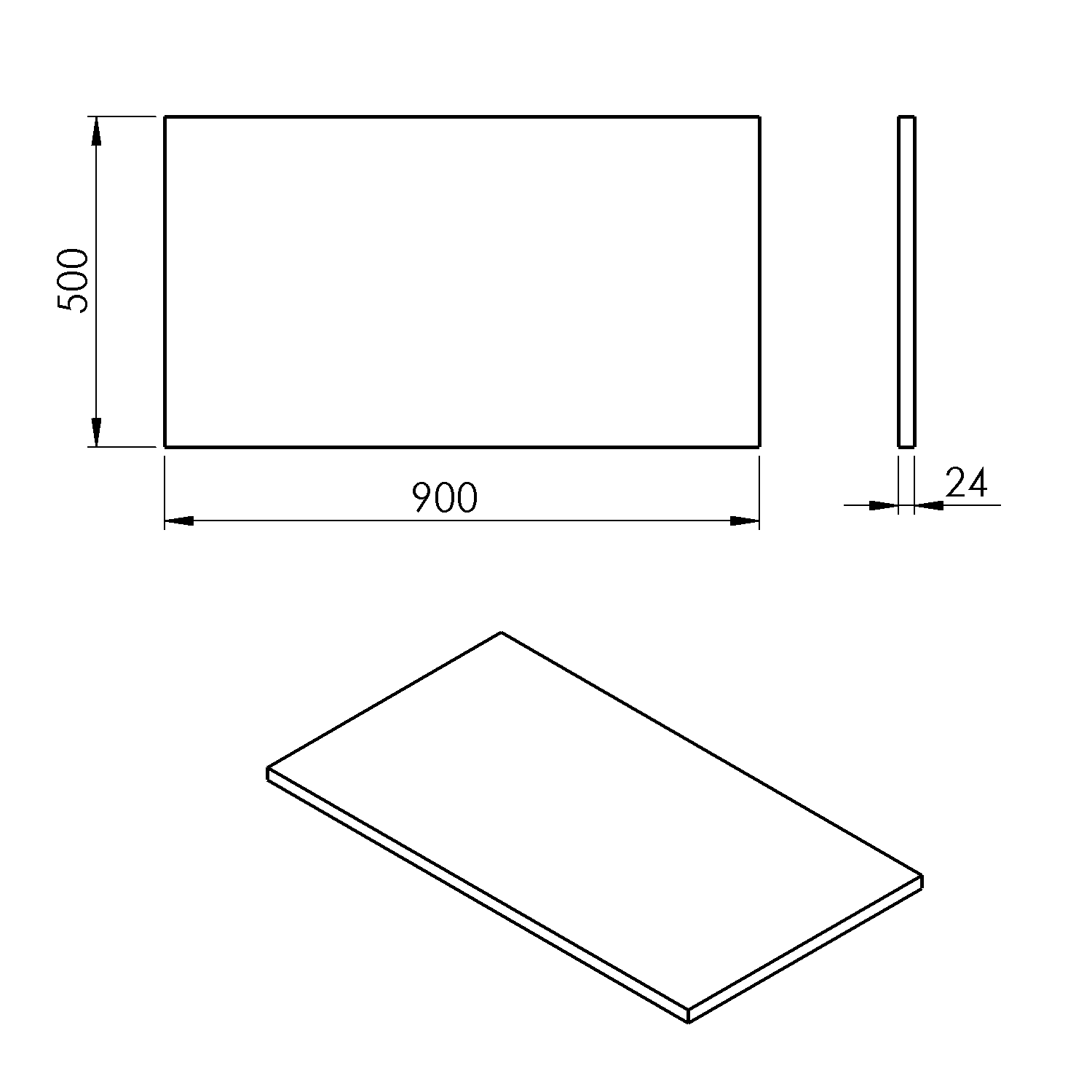 Sapho PLATO deska Rockstone 900x24x500mm, bílá mat PL090-0101