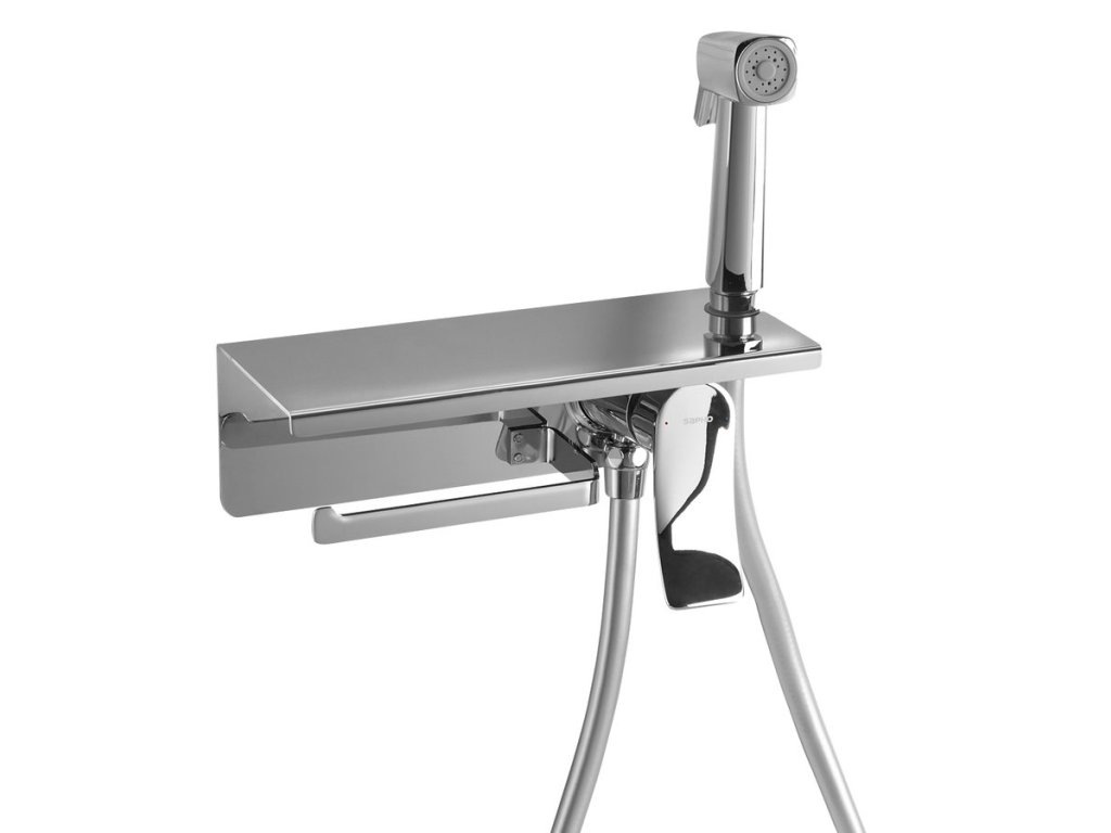 Sapho Podomítková bidetová baterie se Stop sprškou a držákem toaletního papíru, chrom TJ040