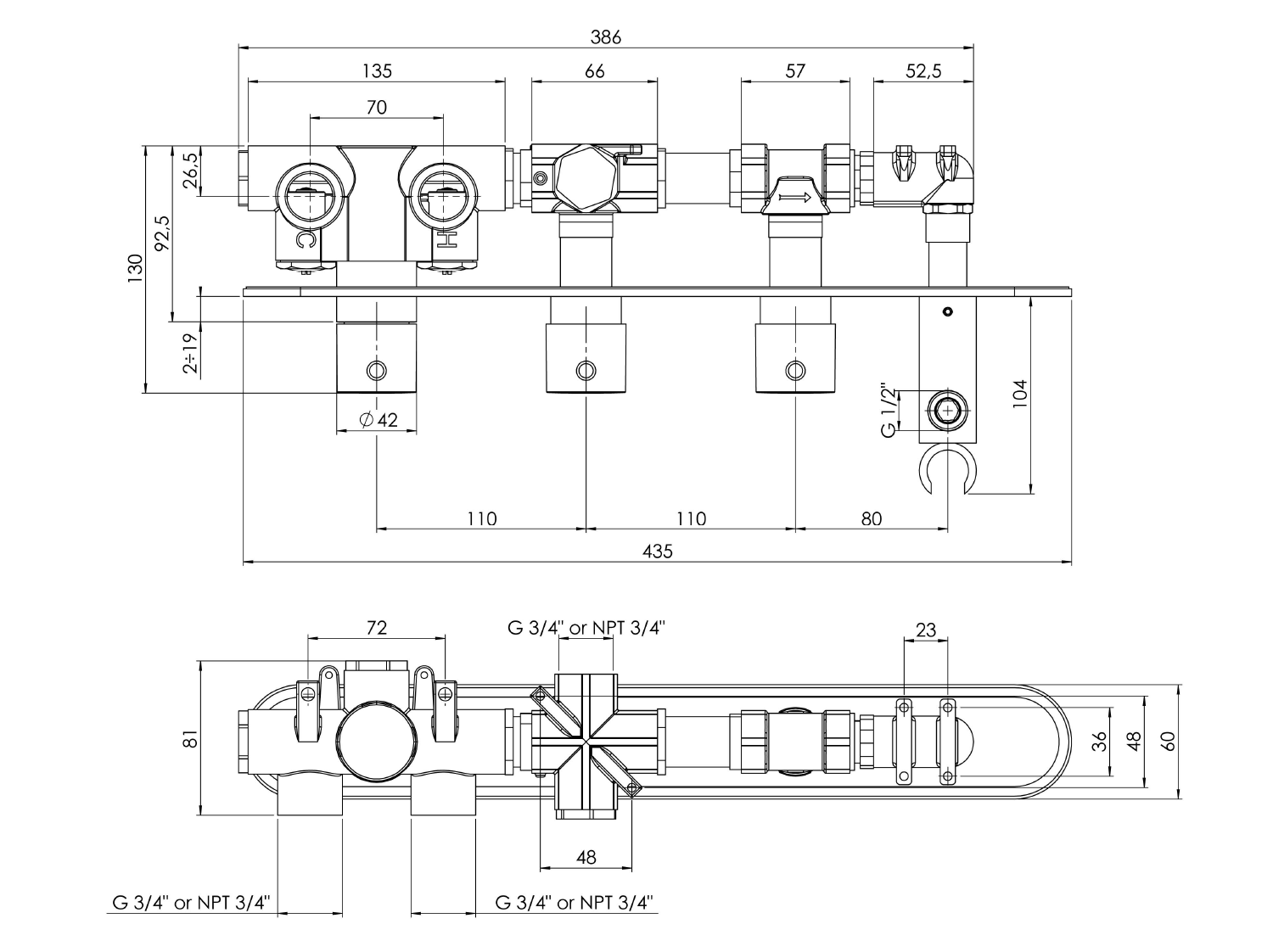 Sapho Podomítková termostatická sprchová/vanová baterie s držákem ruční sprchy, 2 výstupy,kulatá,chrom MB623