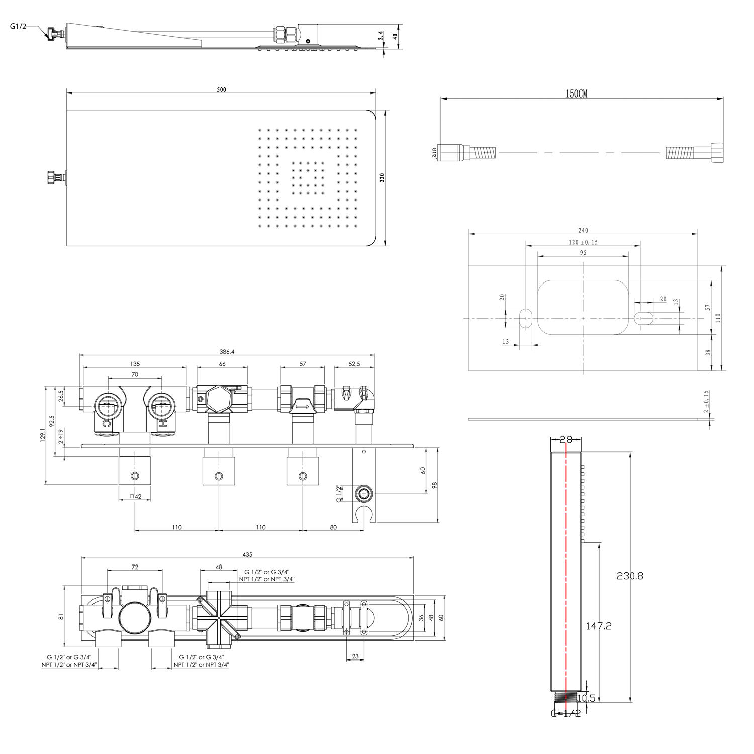 Sapho Podomítkový sprchový set s termostatickou baterií a držákem ruční sprchy, 2 výstupy, hranatá, chrom MB453-01