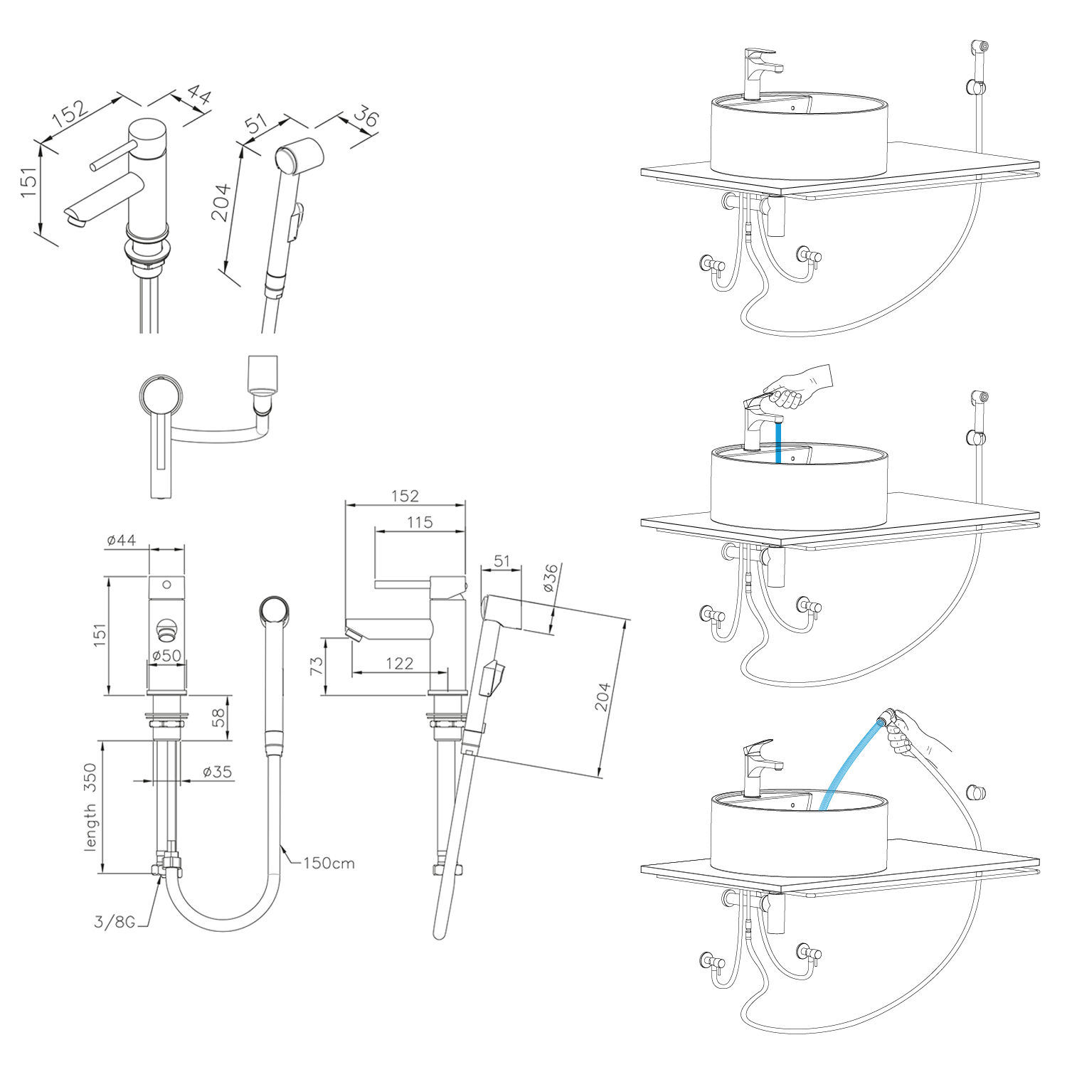 Sapho RHAPSODY stojánková umyvadlová baterie s bidetovou sprchou, chrom 1209-09