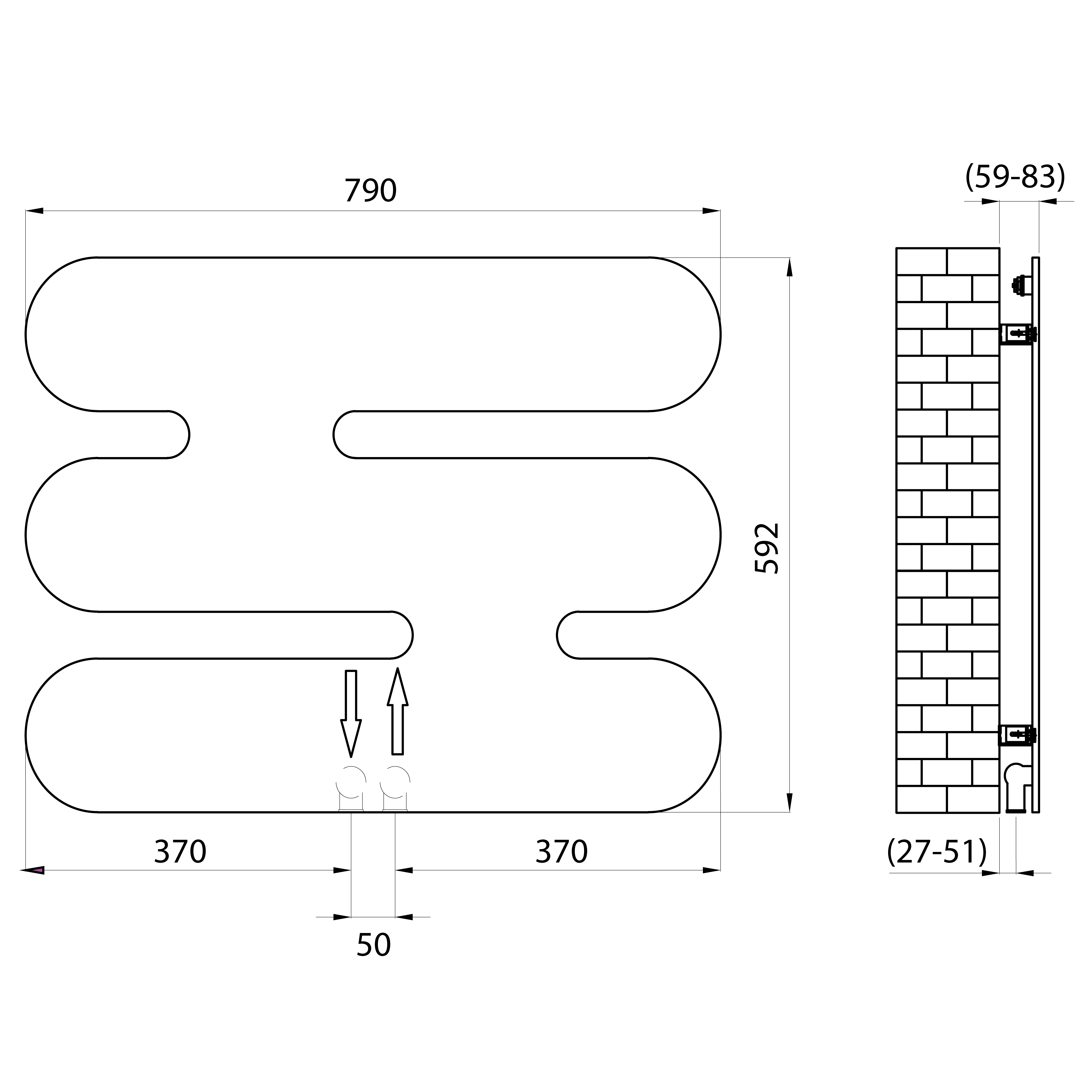 | Umístění připojení 50 mm: | Symetrické (na střed) |