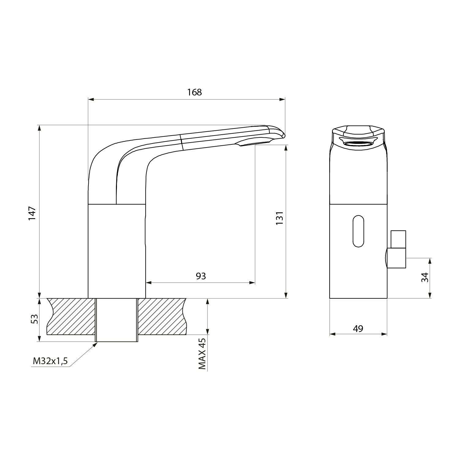 Sapho Senzorová stojánková baterie s regulací teploty, 6V DC (4xAA), chrom PS204