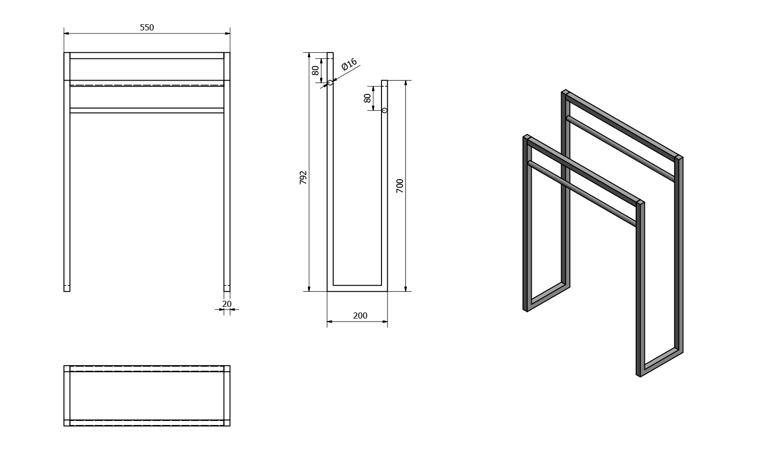 Sapho SKA stojan na ručníky 550x790x200mm, černá mat SKA301
