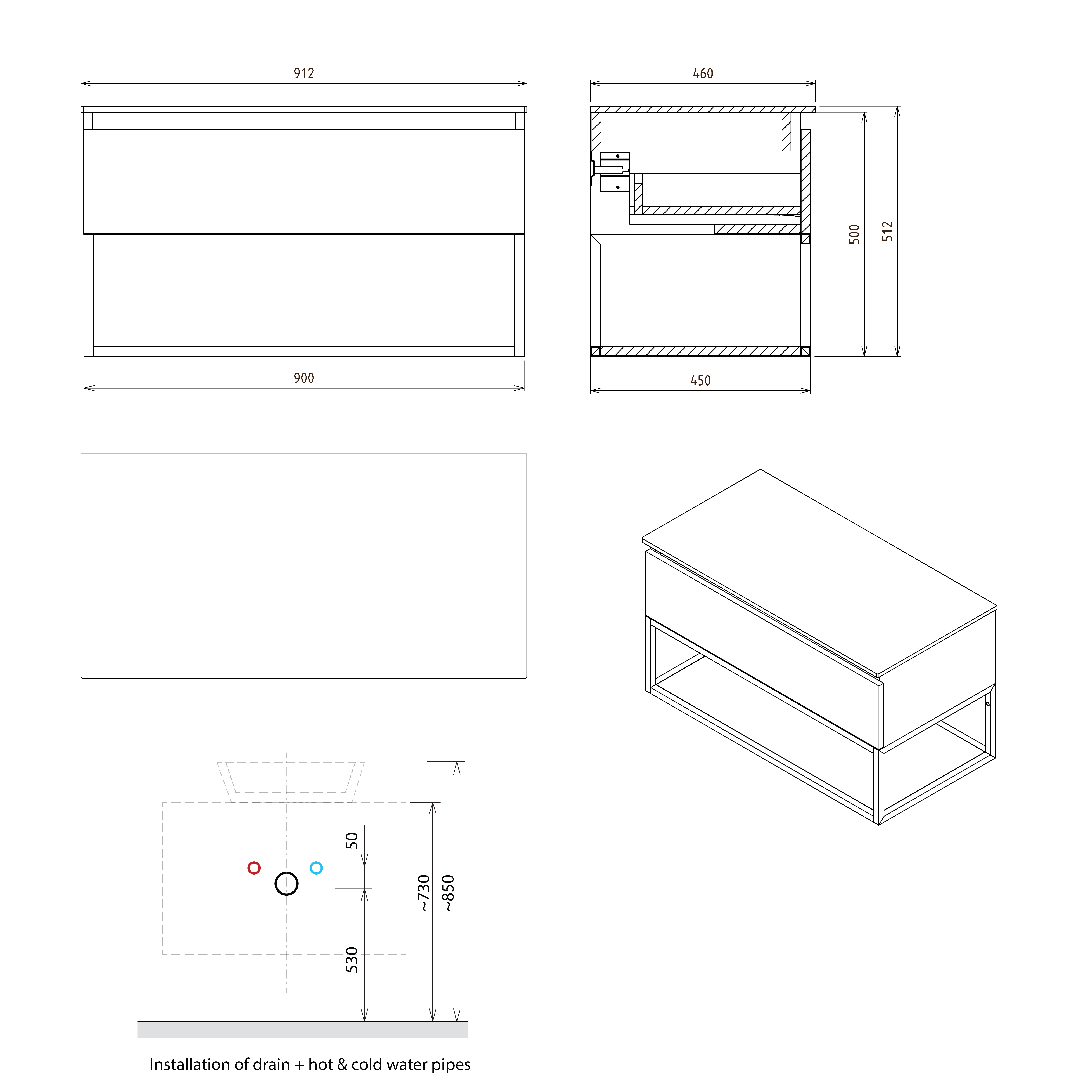 Závěsné konstrukce v šířkách 60, 80 a 100 cm jsou jsou určeny pro umyvadlo TWIG z litého mramoru v bílé barvě. V nabídce jsou i konstrukce určené výhradně k instalaci s rockstone deskou v šířkách 70 až 100 cm.