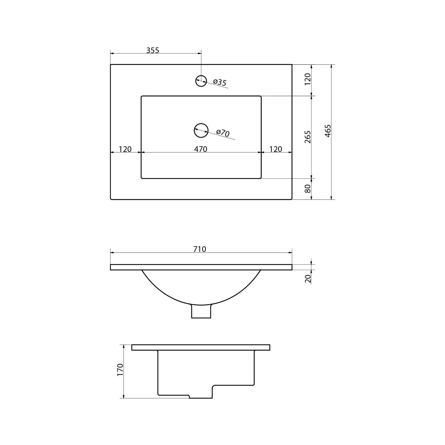 Sapho SLIM keramické umyvadlo, nábytkové, 70x46,5cm, bílá 1601-70