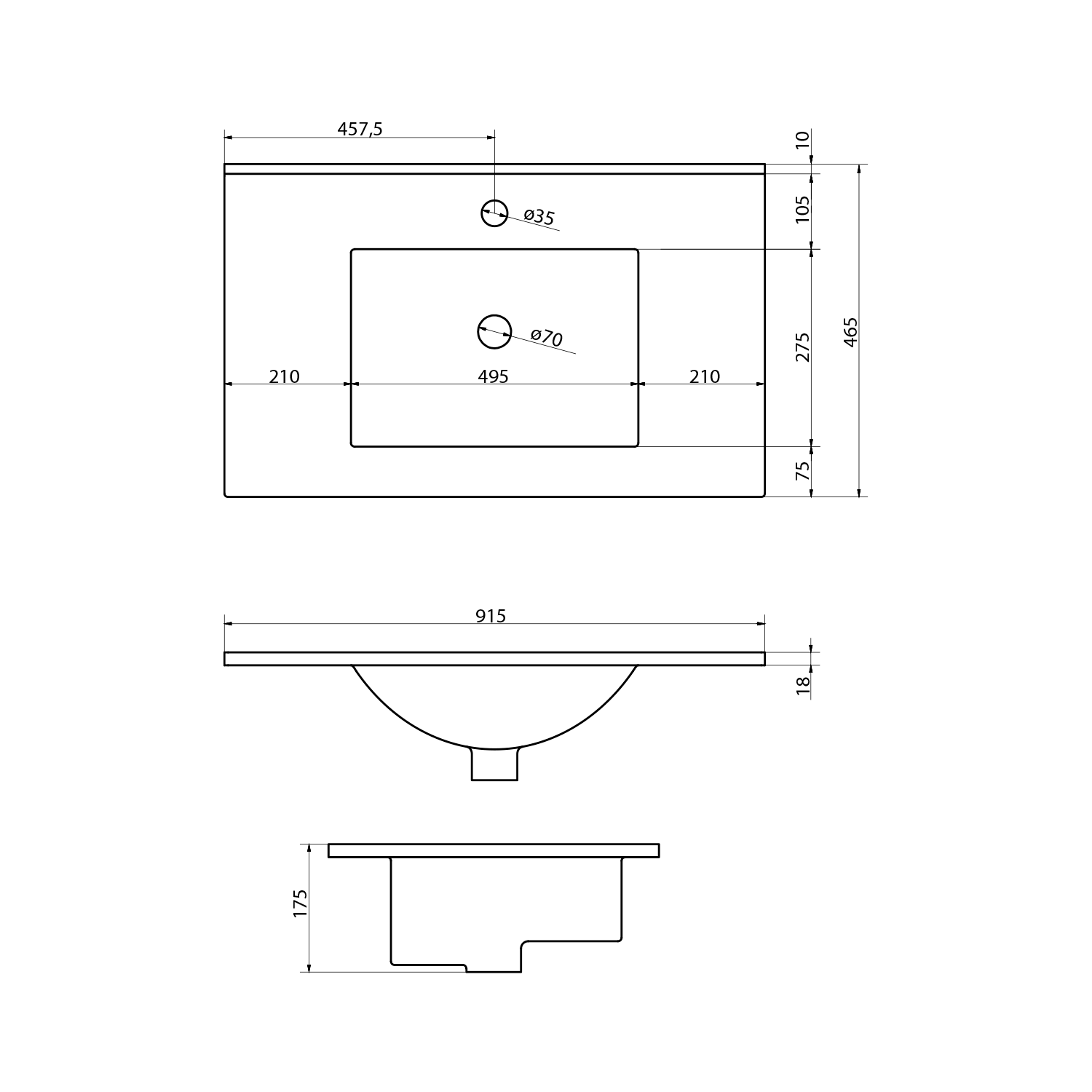 Sapho SLIM keramické umyvadlo, nábytkové, 90x46,5cm, bílá 1601-90