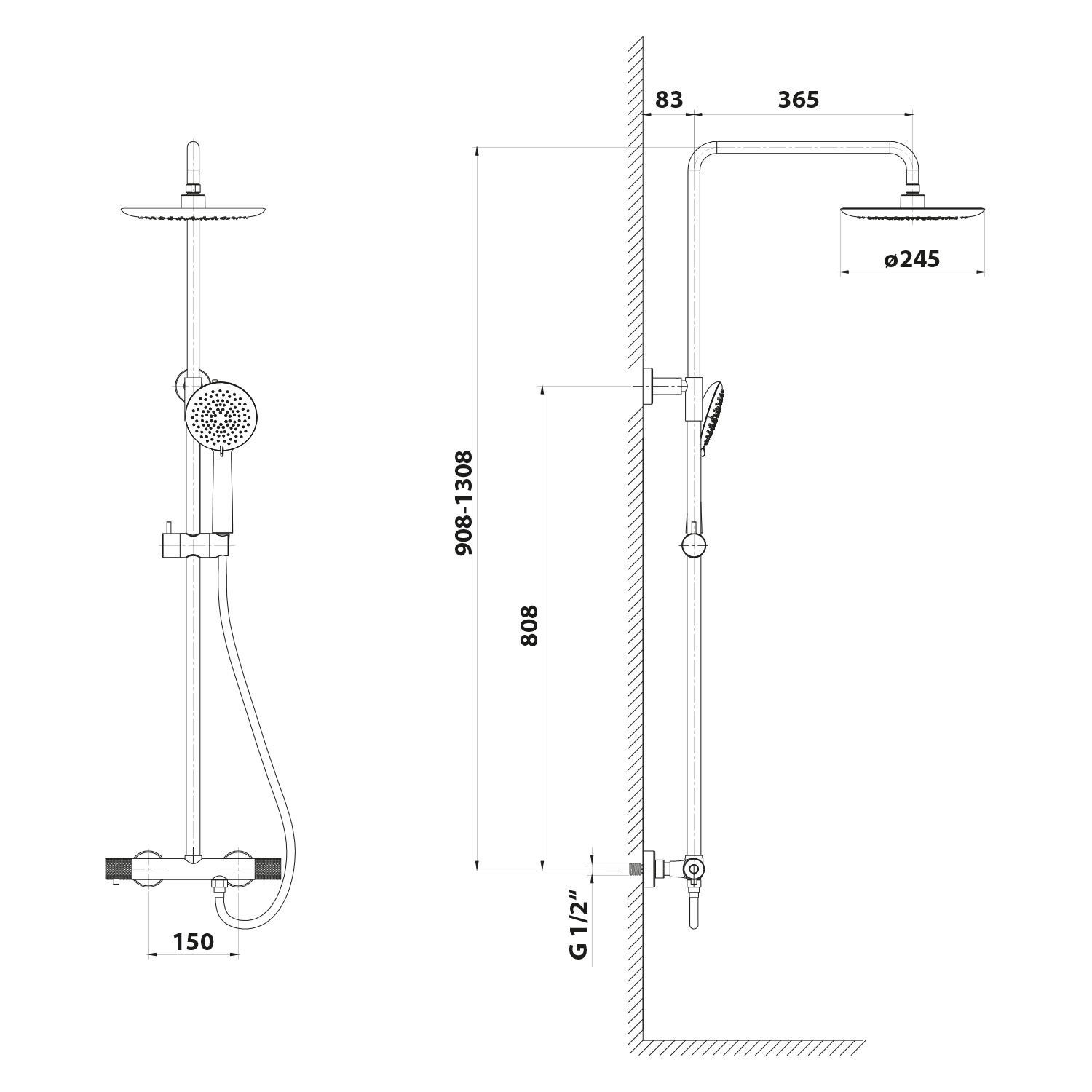 | Instalace: | Nástěnná 150 mm |