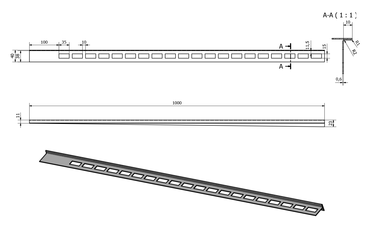 Sapho Spádová lišta, pravá, výška 10mm, délka 1000mm, nerez mat SPD10-P