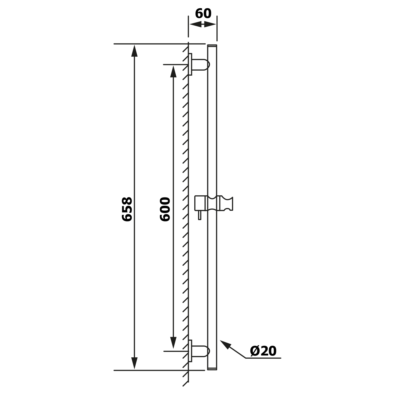Sapho Sprchová tyč, posuvný držák, kulatá, 660mm, chrom 1202-06