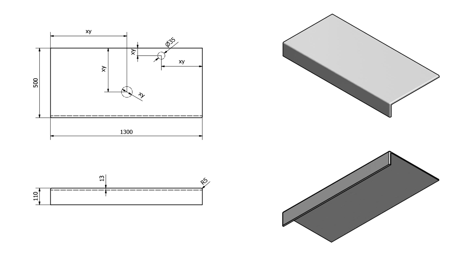 - Možnost dodání s otvory pro baterii a odpad dle výkresu (lze vrtat i v místě instalace)