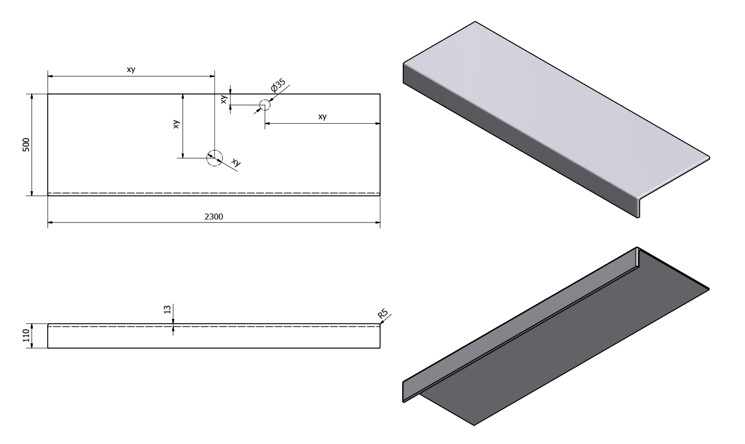 - Možnost dodání s otvory pro baterii a odpad dle výkresu (lze vrtat i v místě instalace)