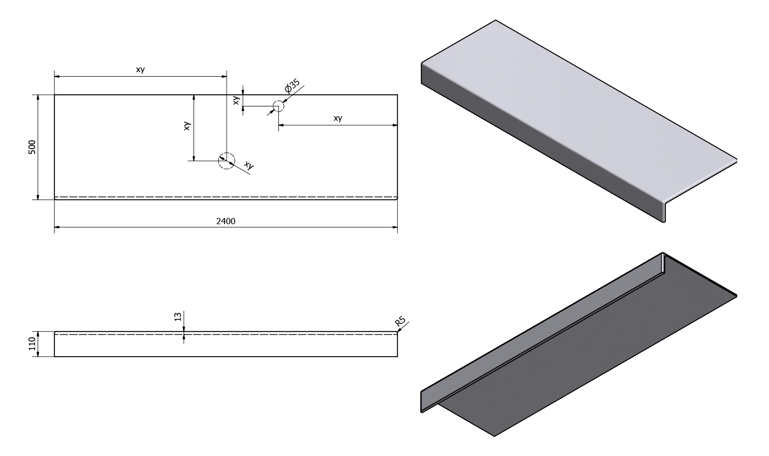 - Možnost dodání s otvory pro baterii a odpad dle výkresu (lze vrtat i v místě instalace)