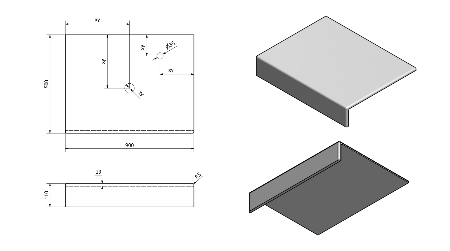 - Možnost dodání s otvory pro baterii a odpad dle výkresu (lze vrtat i v místě instalace)