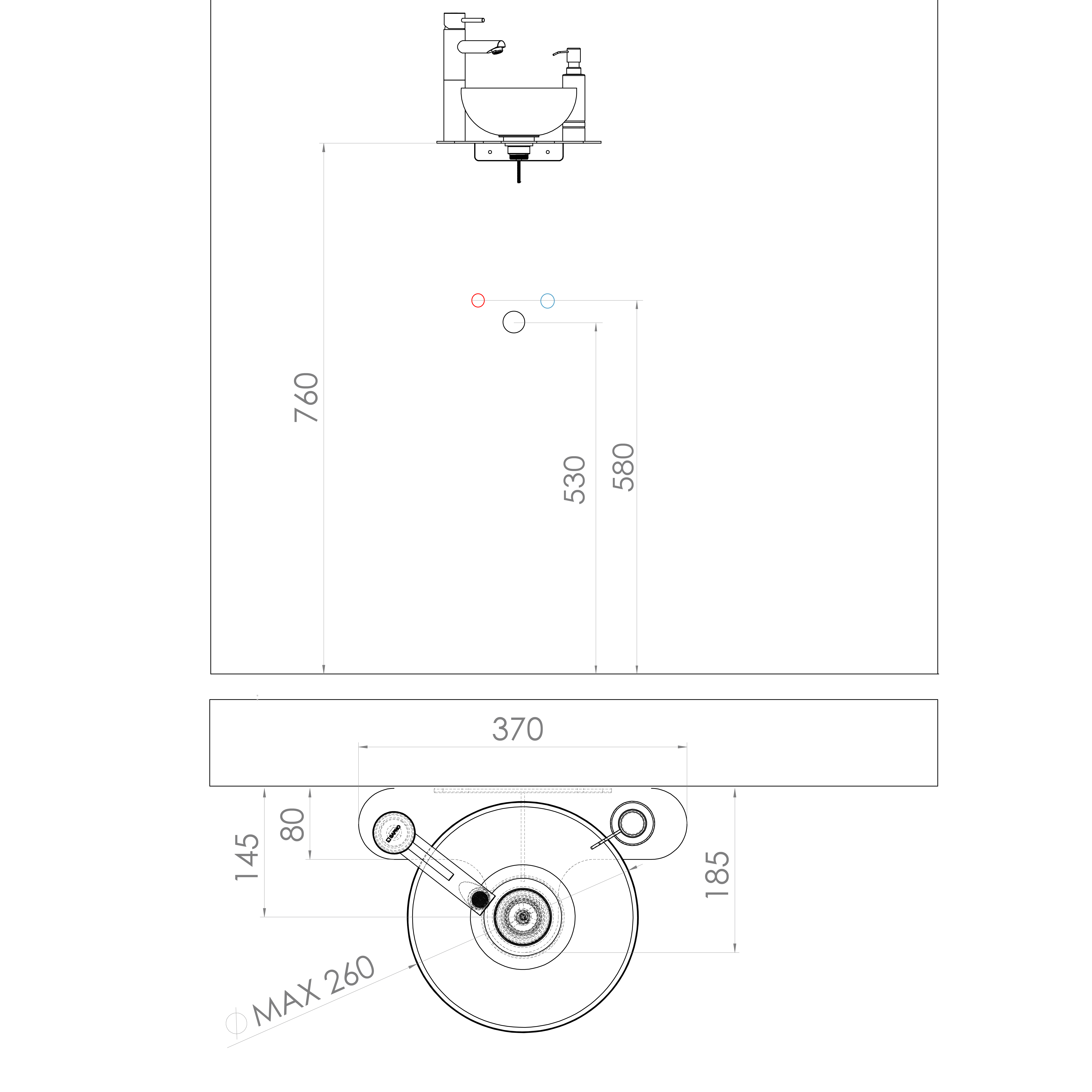 Sapho TETRIS umývátko s konzolí pro stojánkovou baterii vlevo, černá mat TZ424-01