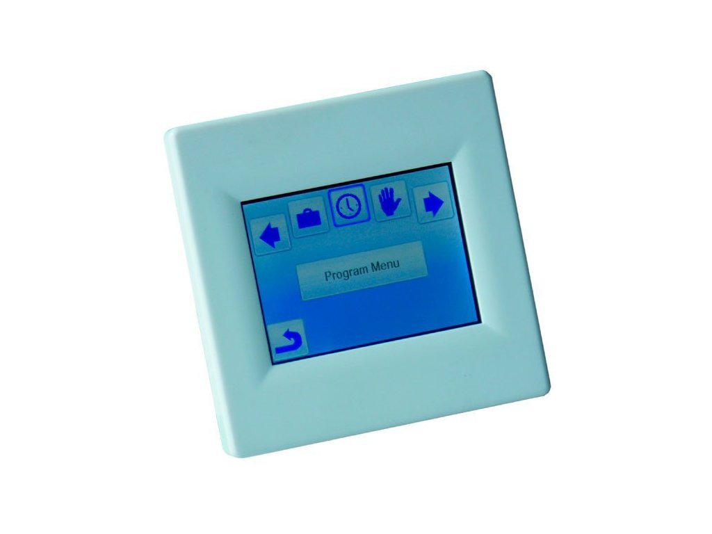 Programovatelný univerzální termostat - snímá teplotu prostoru i podlahy. Dotykový (uzamykatelný) displej s volitelnou barvou pozadí, CZ menu, volba měřených teplot: "podlaha/prostor/podlaha+prostor/2x podlaha+prostor"; nastavitelný typ regulace: pevná teplotní diference nebo PWM (pulzní šířková modulace); počítání provozních nákladů (den/měsíc/rok); zobrazení teploty prostoru i podlahy.