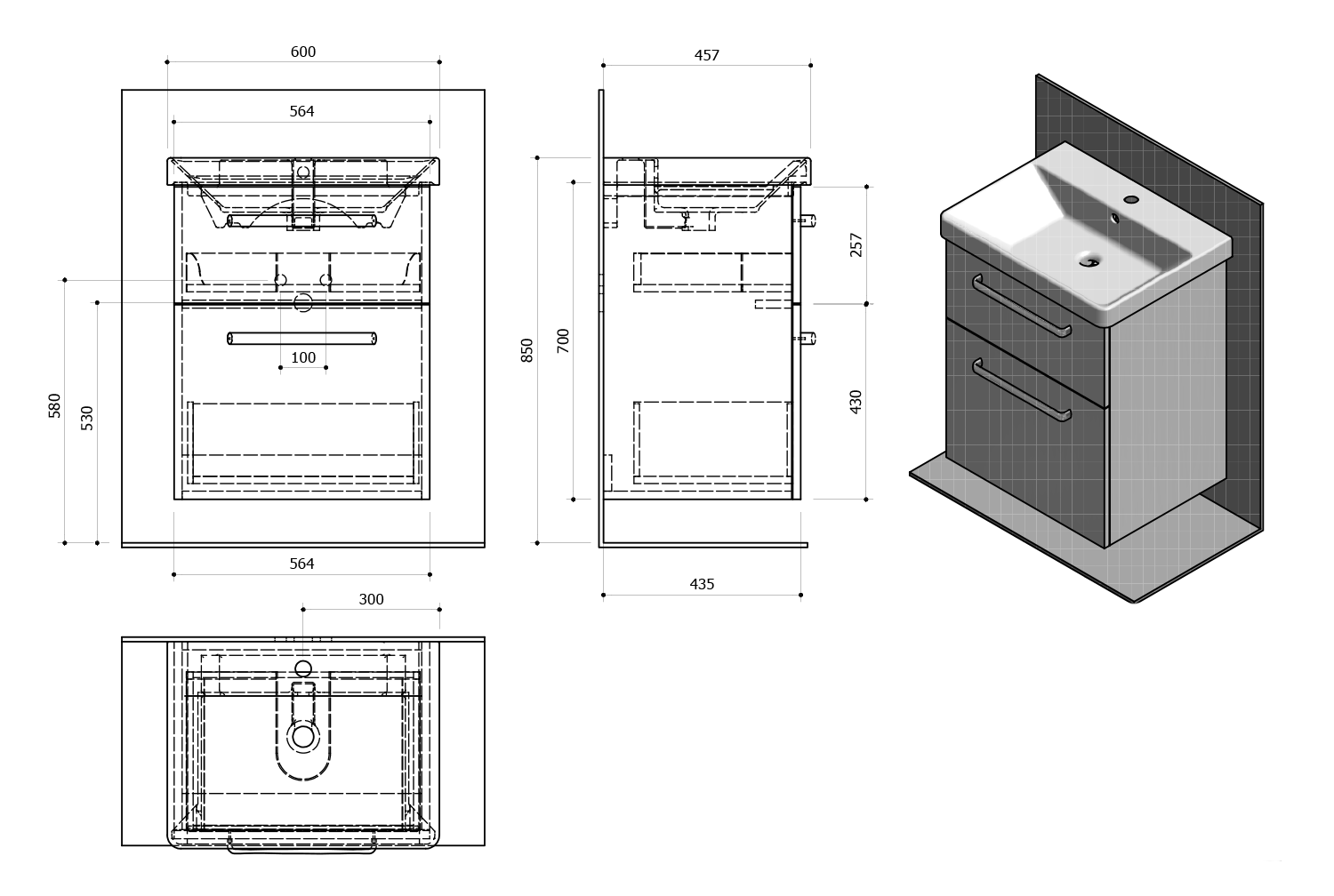 - Standardně dodáváno s úchytkami CT320, rozteč uchycení 320 mm.