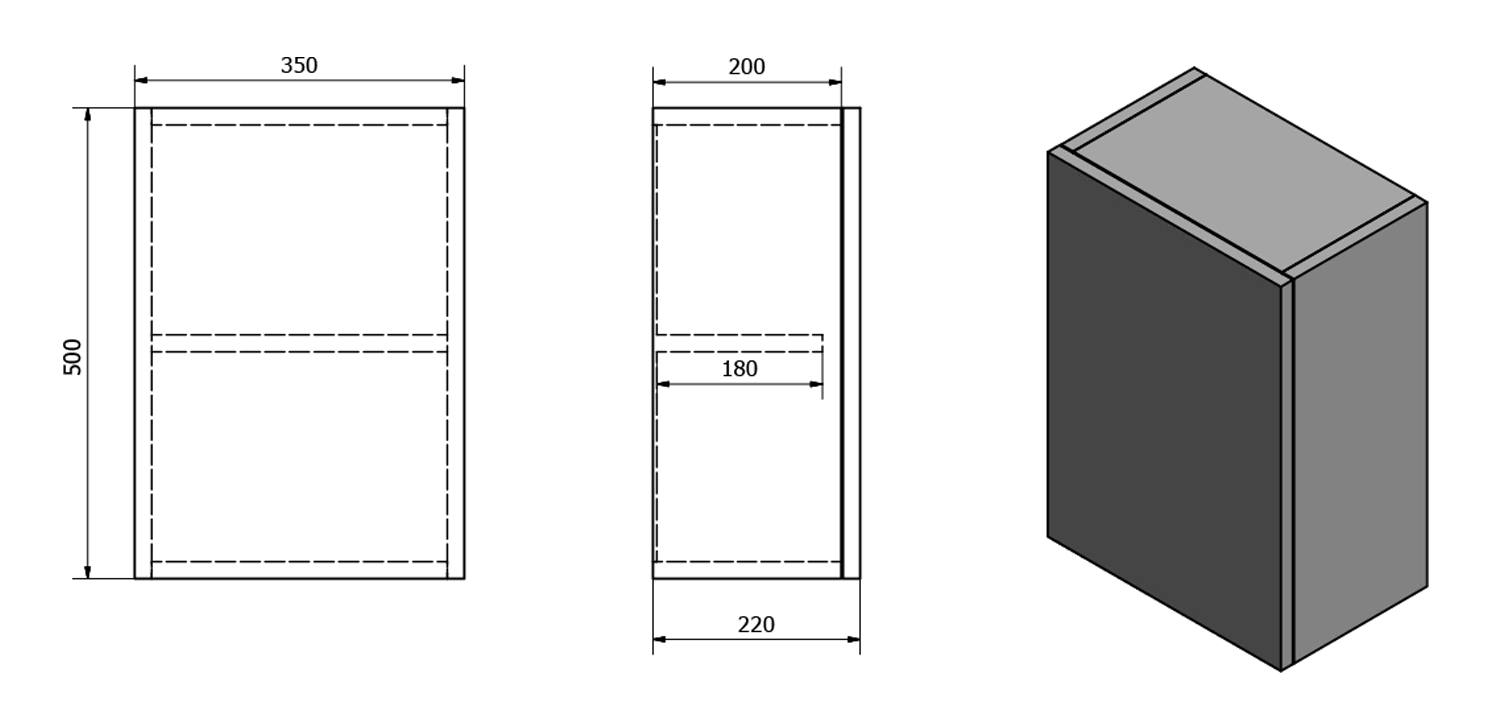 Nábytek je dodáván ve smontovaném stavu, připraven k okamžité instalaci. Nábytek instalujte na rovnou stěnu.