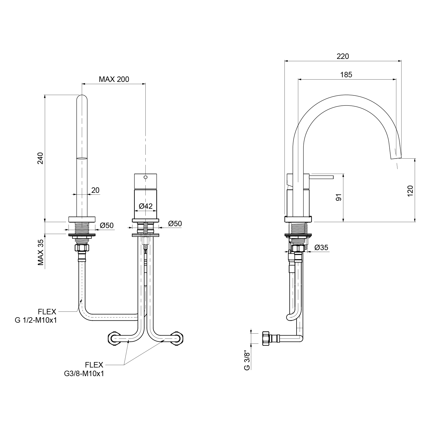 Série ULTRAMIX vyniká univerzálním designem válcového tvaru, který je doplněn decentní hranou a úzkou páčkou – kombinace, která je nejen esteticky přitažlivá, ale především praktická. Válcový tvar umožňuje snadné čištění a tím baterie neztrácí svůj elegantní vzhled ani při každodenním používání. Decentní hrana poskytuje baterii pevný a stabilní dojem a úzká páčka zajišťuje lehké a přesné ovládání průtoku i teploty vody. Minimalistický vzhled a ergonomie dělají z této kolekce vodovodních baterií perfektní volbu pro moderní koupelnu, kde je kladen důraz na jednoduchost a funkčnost bez kompromisů.