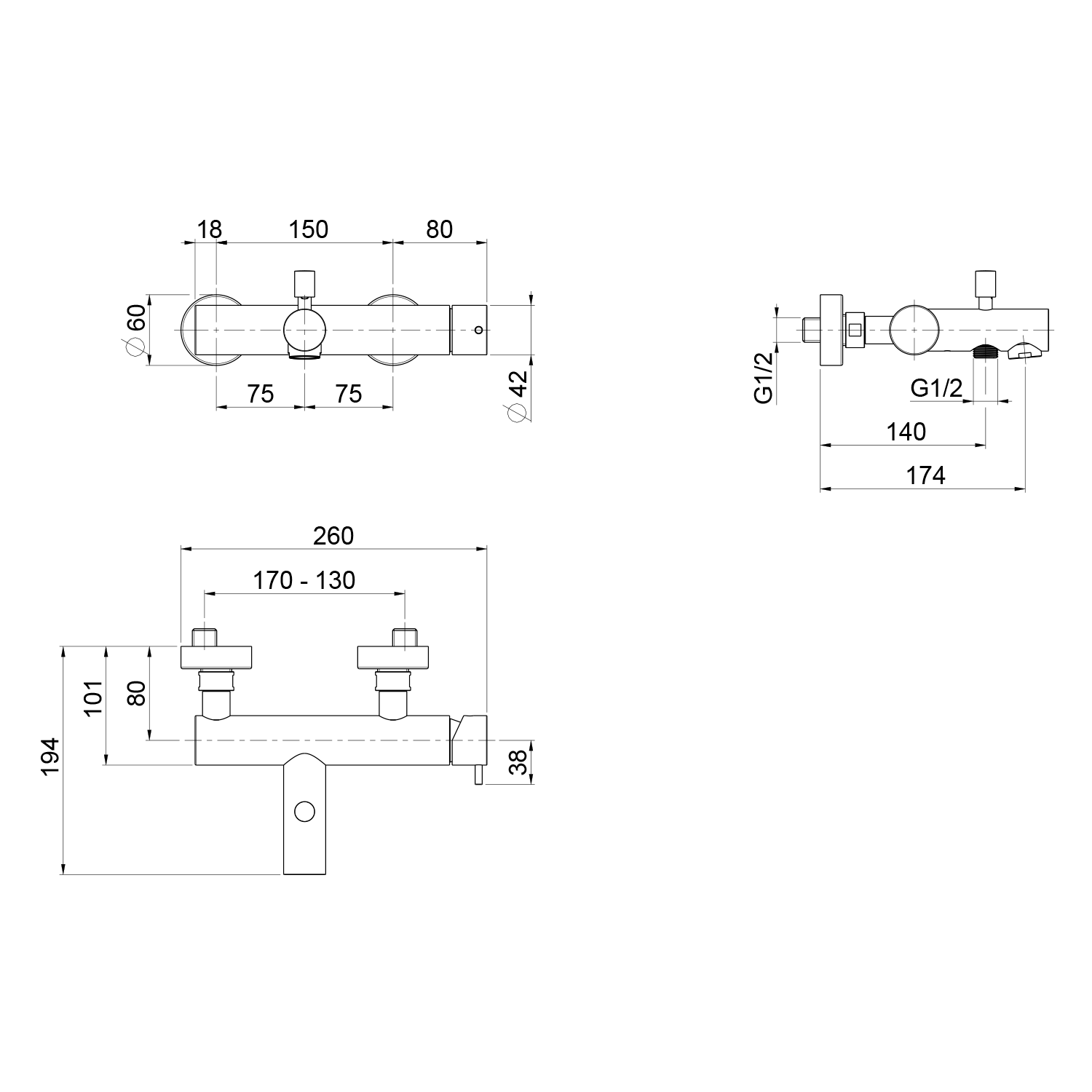 | Instalace: | Nástěnná 150 mm |