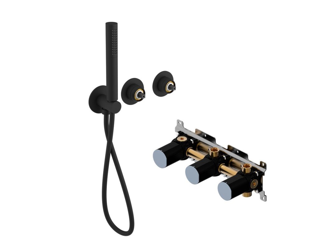 Sapho ULTRAMIX tělo podomítkové sprchové/vanové baterie s ruční sprchou, 2 výstupy, černá mat UT045B-1