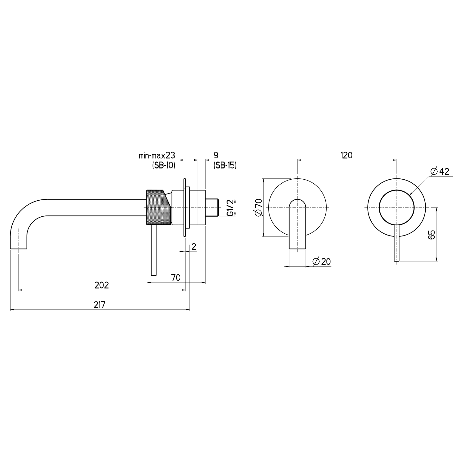 Sapho ULTRASAN podomítková dvouprvková umyvadlová baterie, hubice 20cm, černá mat/chrom UT018VBC
