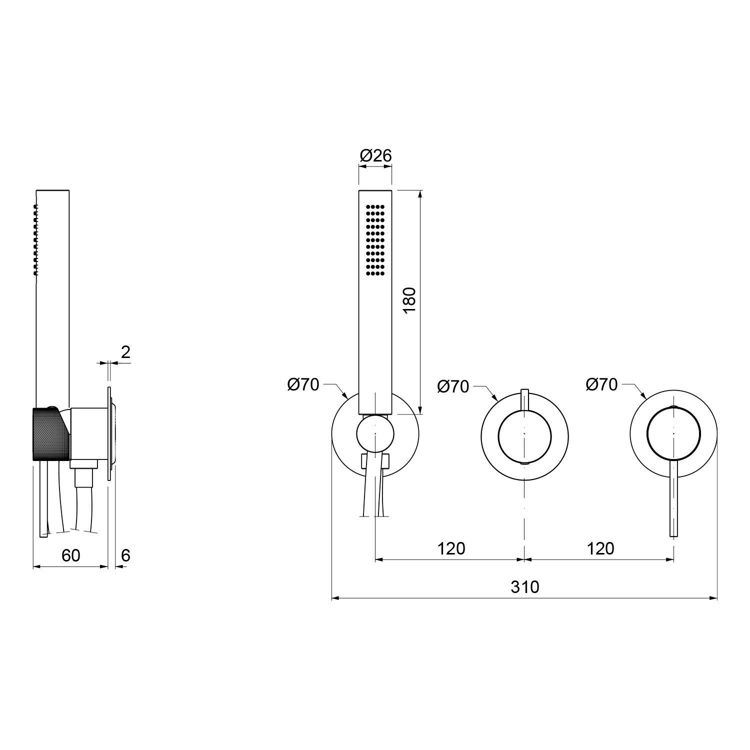 Sapho ULTRASAN podomítková sprchová/vanová baterie s ruční sprchou, 2 výstupy, černá mat UT045VB