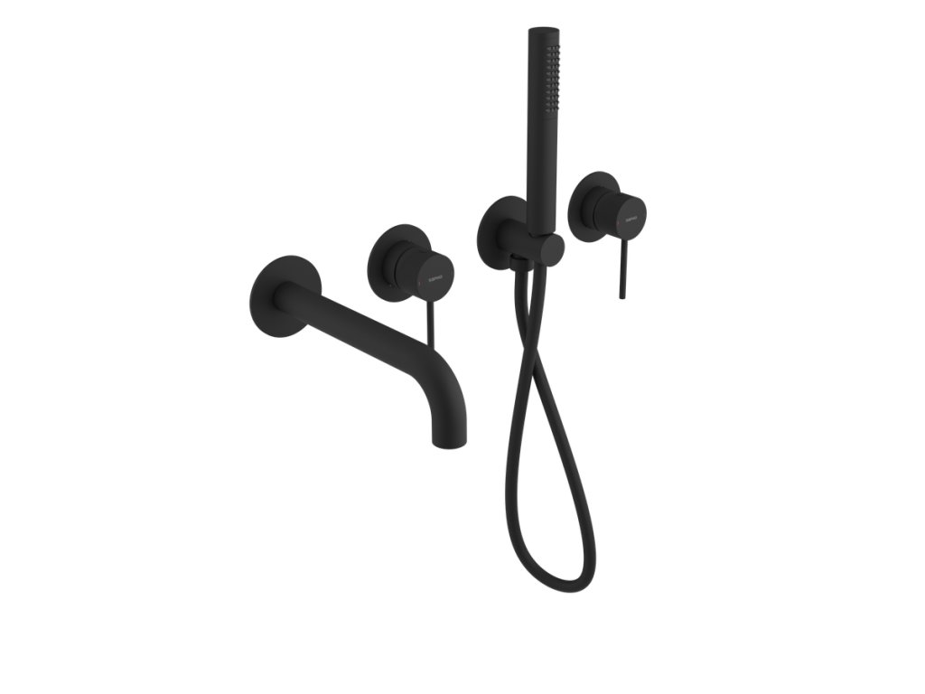 Sapho ULTRASAN podomítková vanová baterie s hubicí a ruční sprchou, 2 výstupy, černá mat UT093VB
