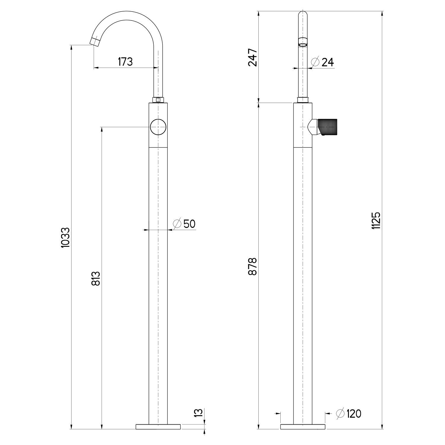 Sapho ULTRATAP umyvadlová baterie s připojením do podlahy, černá mat/chrom UT016TBC