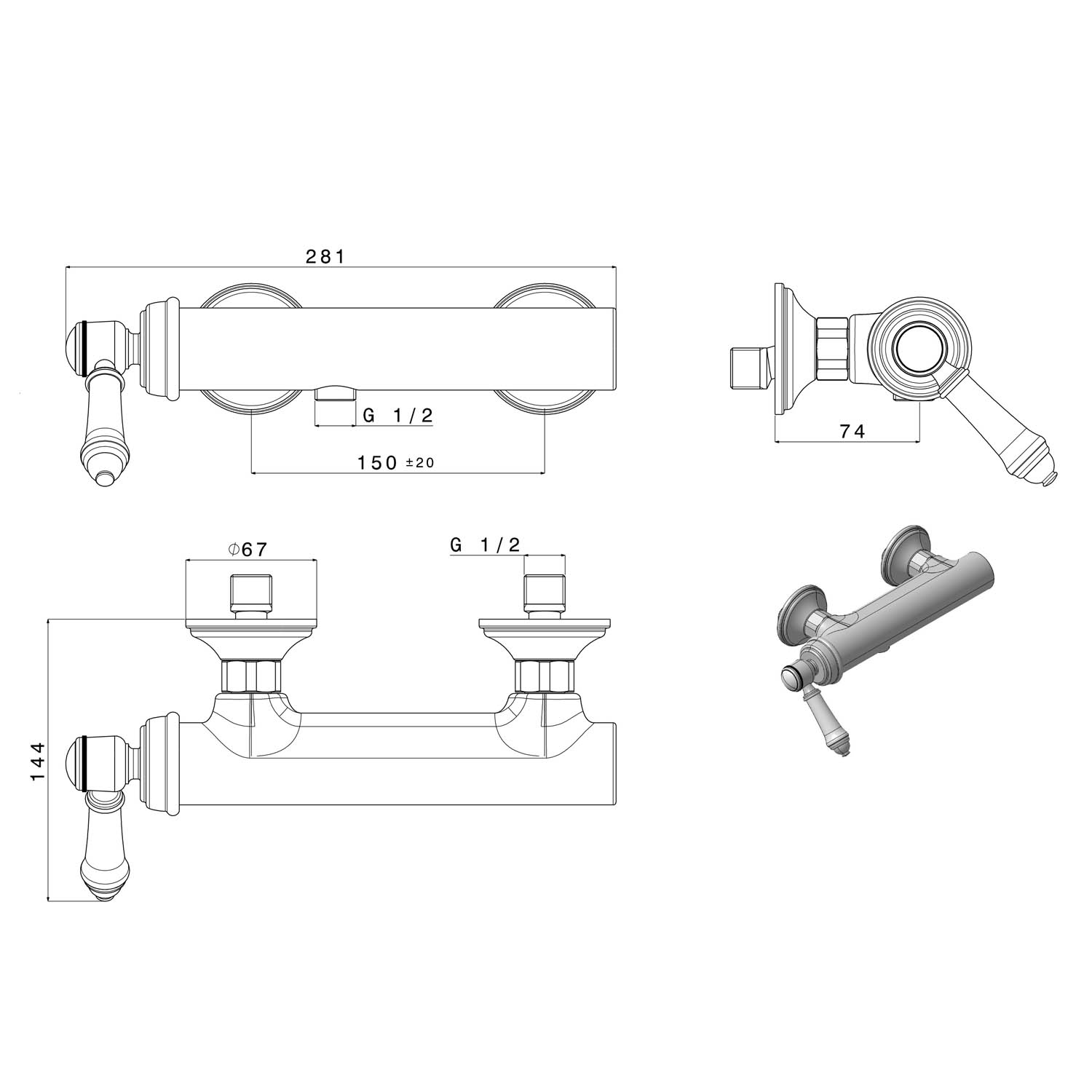 | Instalace: | Nástěnná 150 mm |