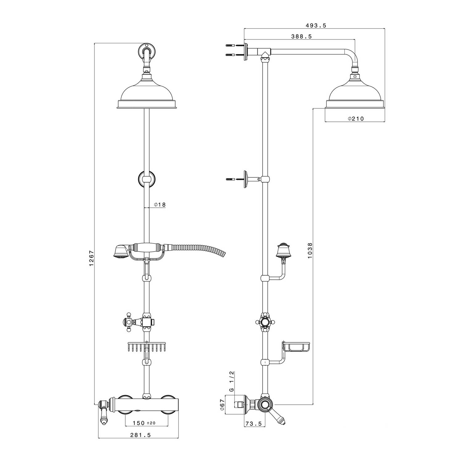 | Instalace: | Nástěnná 150 mm |