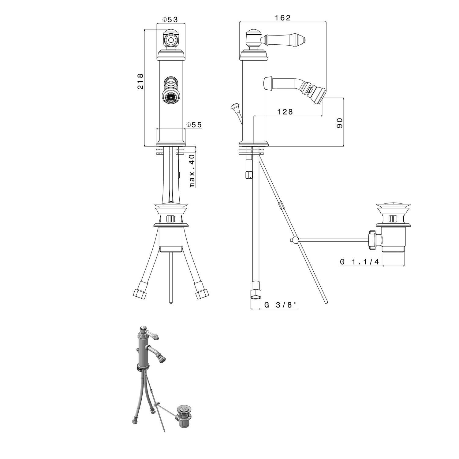 Sapho VIENNA stojánková bidetová baterie s výpustí, bronz VO003BR