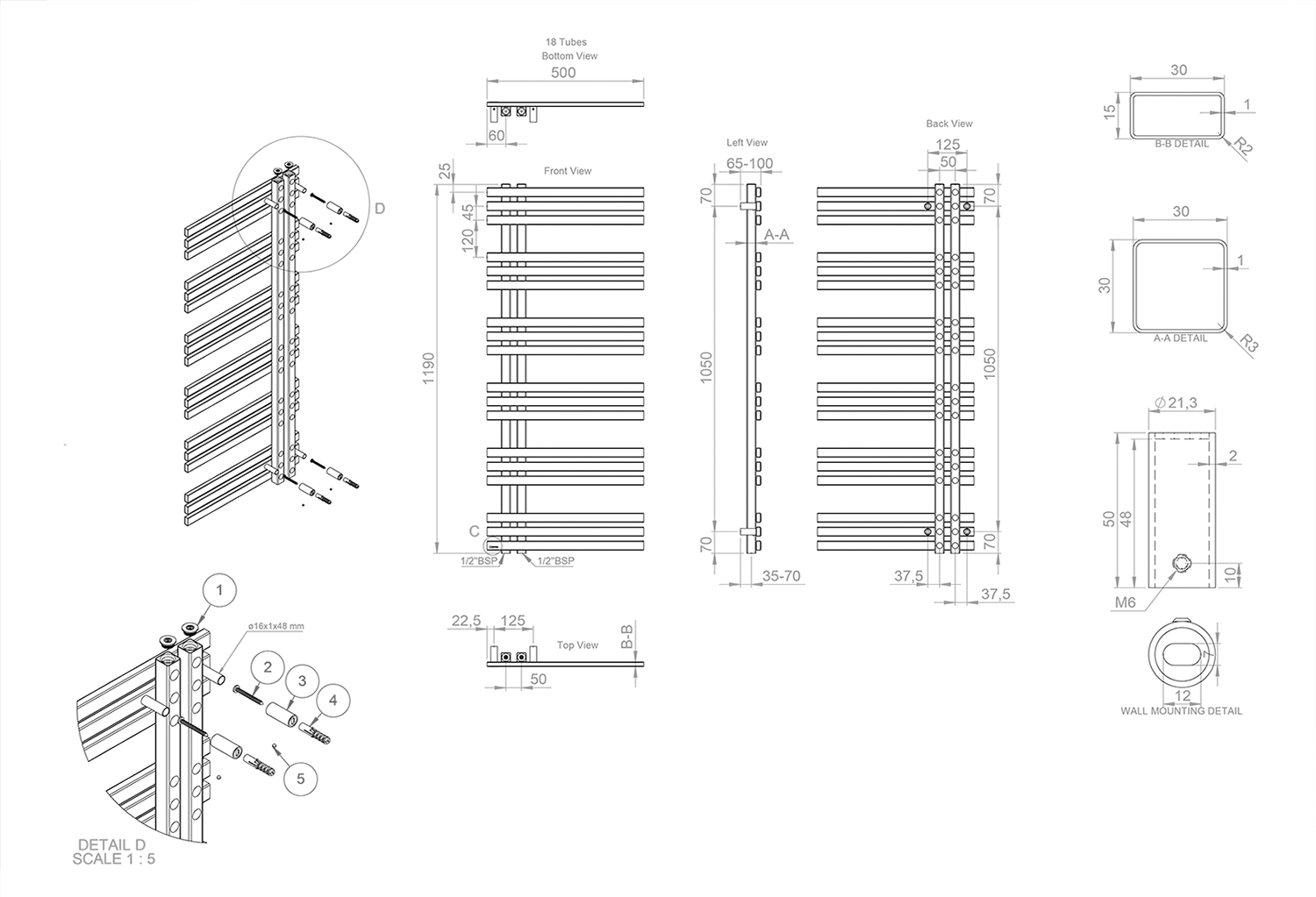 - Topná tyč a připojovací ventily nejsou součástí balení