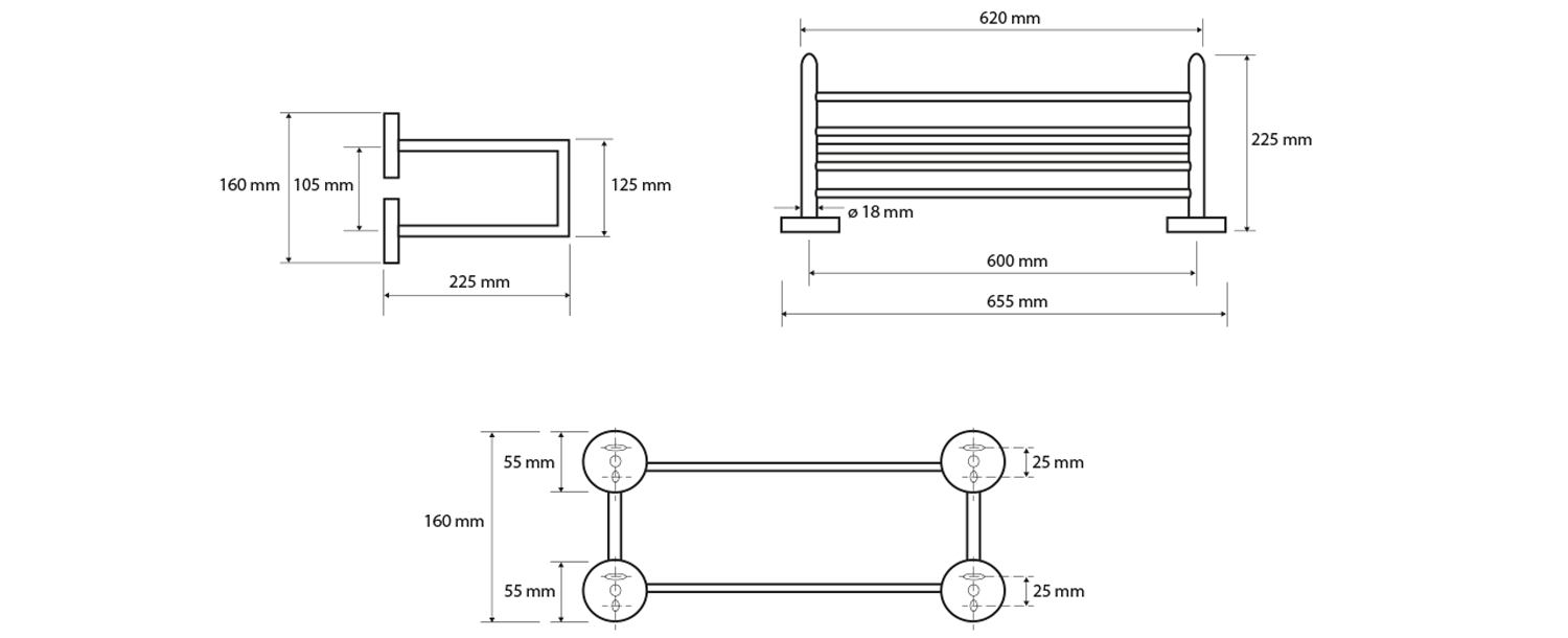 Sapho X-ROUND polička na ručníky dvojitá s hrazdou 600x160x225mm, chrom XR416