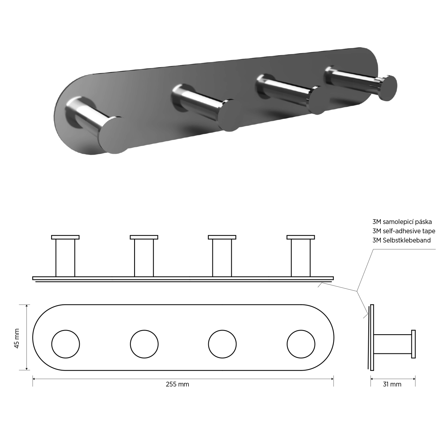 - Opatřen oboustrannou 3M lepící páskou, která zaručuje mimořádnou životnost spoje, spolehlivě nahrazuje vruty či jiné prostředky pro trvalé upevnění