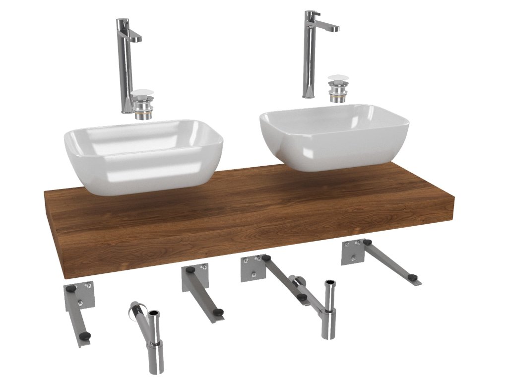 Cenově zvýhodněný koupelnový set se skládá ze třinácti výrobků - vodovodní baterie 2x, umyvadlo 2x, deska pod umyvadlo, zátka 2x, sifon 2x, konzole 4xDoplňkové parametry