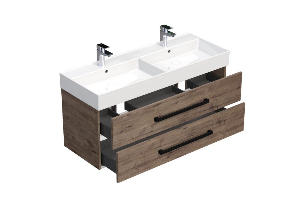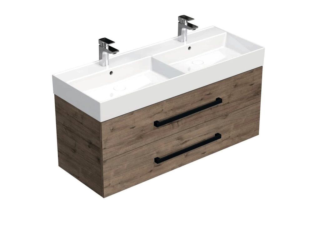 Závěsná koupelnová skříňka s černou úchytkou a keramickým umyvadlem v provedení dub wellington s matným povrchem o rozměru 120x47,5x46 cm. Povrch v provedení lamino. ZÁRUKA 5 LET, dostupnost náhradních dílů 10 LET.Doplňkové parametry