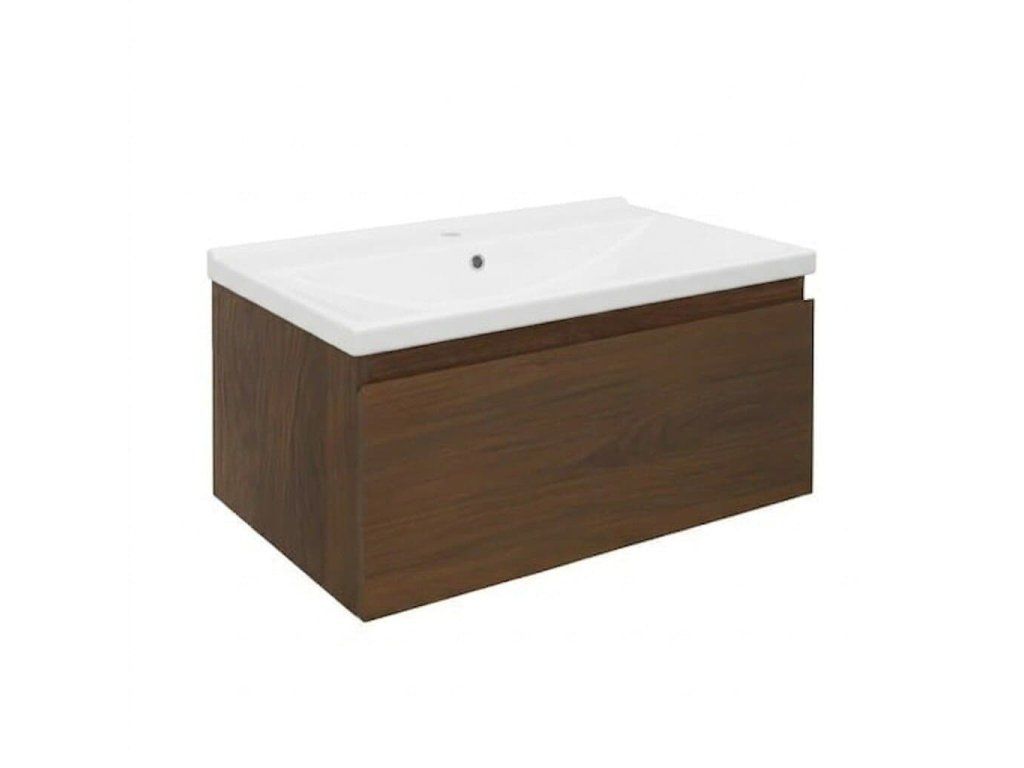 Závěsná koupelnová skříňka s keramickým umyvadlem v dekoru ořech s matným povrchem o rozměru 59x30x45 cm. Povrch v provedení lamino. ZÁRUKA 5 LET, dostupnost náhradních dílů 10 LET.Doplňkové parametry