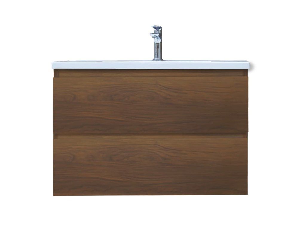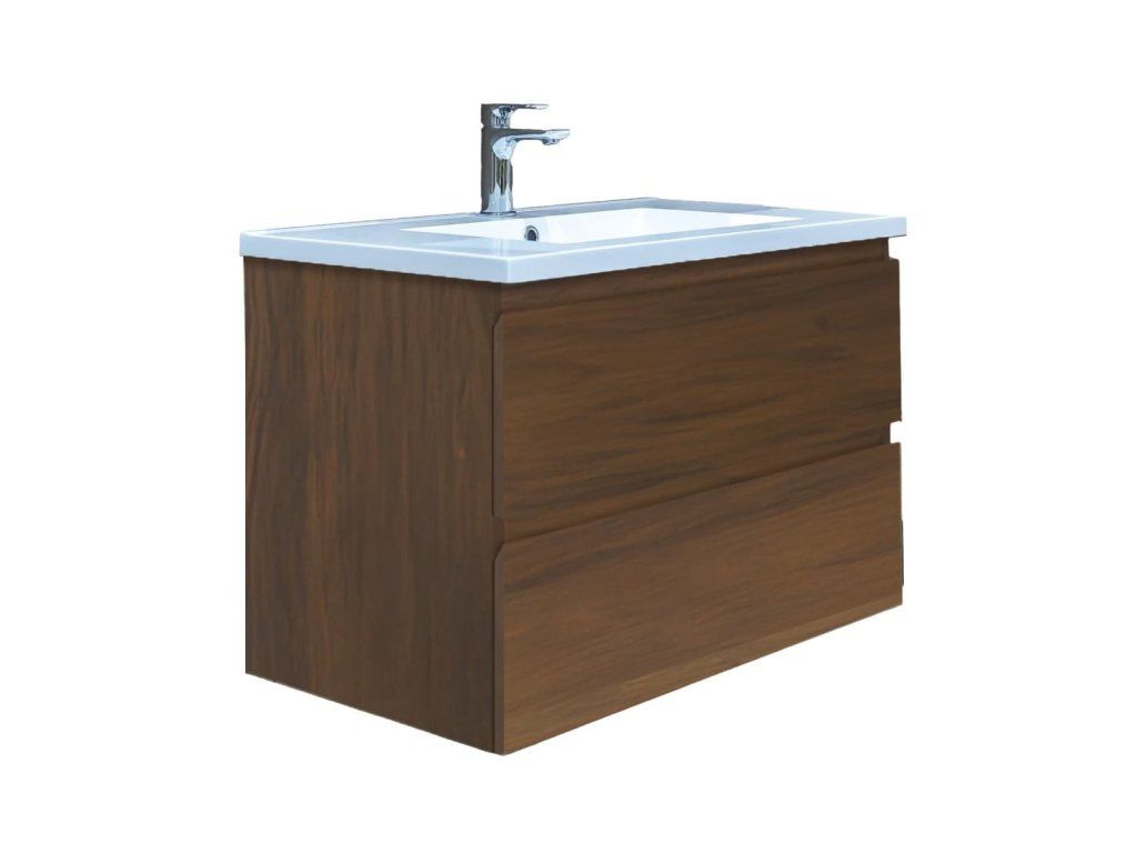 Závěsná koupelnová skříňka s umyvadlem z litého mramoru v dekoru ořech s matným povrchem o rozměru 79x50x45 cm. Povrch v provedení lamino. ZÁRUKA 5 LET, dostupnost náhradních dílů 10 LET.Doplňkové parametry