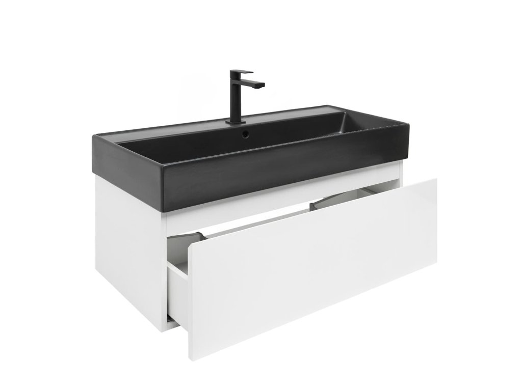 Závěsná koupelnová skříňka s keramickým umyvadlem v bílé barvě s lesklým povrchem o rozměru 99x30x45 cm. Povrch v provedení lamino. ZÁRUKA 5 LET, dostupnost náhradních dílů 10 LET.Doplňkové parametry