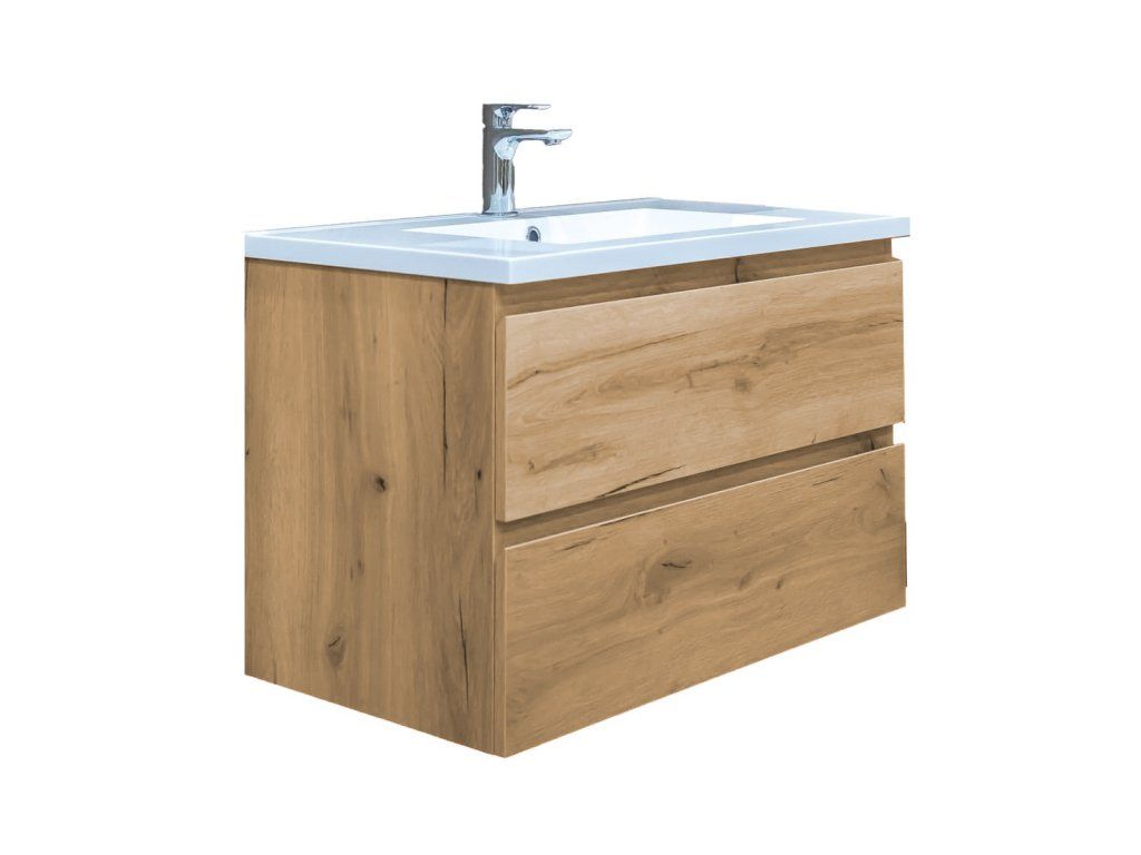 Závěsná koupelnová skříňka s umyvadlem z litého mramoru v dekoru dub s matným povrchem. Povrch v provedení lamino. ZÁRUKA 5 LET, dostupnost náhradních dílů 10 LET.Doplňkové parametry