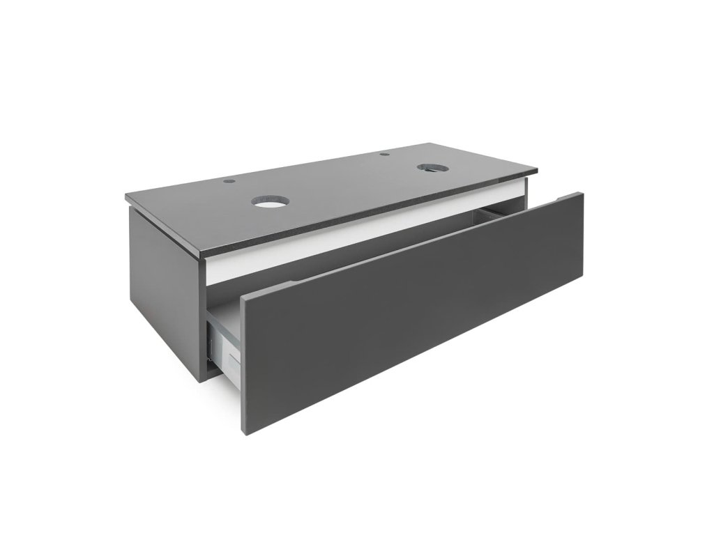 Závěsná koupelnová skříňka s žulovou krycí deskou v antracitové barvě s matným povrchem o rozměru 120x30x46 cm. Povrch v provedení lamino. ZÁRUKA 5 LET, dostupnost náhradních dílů 10 LET.Doplňkové parametry